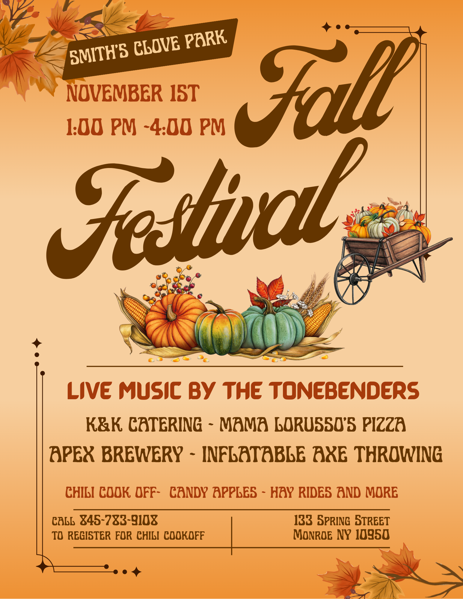 Welcome to Smith’s Clove Park, nestled in the picturesque Hudson Valley in Monroe, New York. The park is open to residents of the Village of Monroe and the unincorporated Town of Monroe. Smith’s Clove Park features over 15 different sporting fields & has an extremely busy social calendar all year long, featuring all types of recreational activities and programs for all ages.